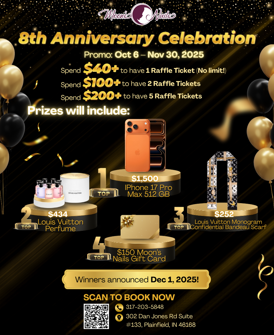 Located in the heart of Plainfield, Indiana, zip code 46168, Moon's Nails has